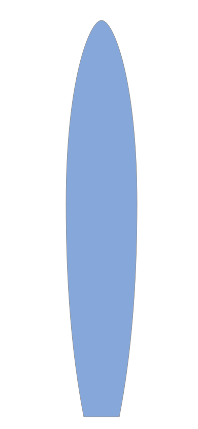 The advantage is that the swept fin makes it easier to draw a straight line by moving the centre of gravity of the fin back, and because the tail fin has a larger surface area, it also makes the paddle more laterally stable, which belongs to the long-distance fin. The downside is that it will be a pain if the rower wants to make quick turns, it won't be the fastest tail fin due to its size and more drag.